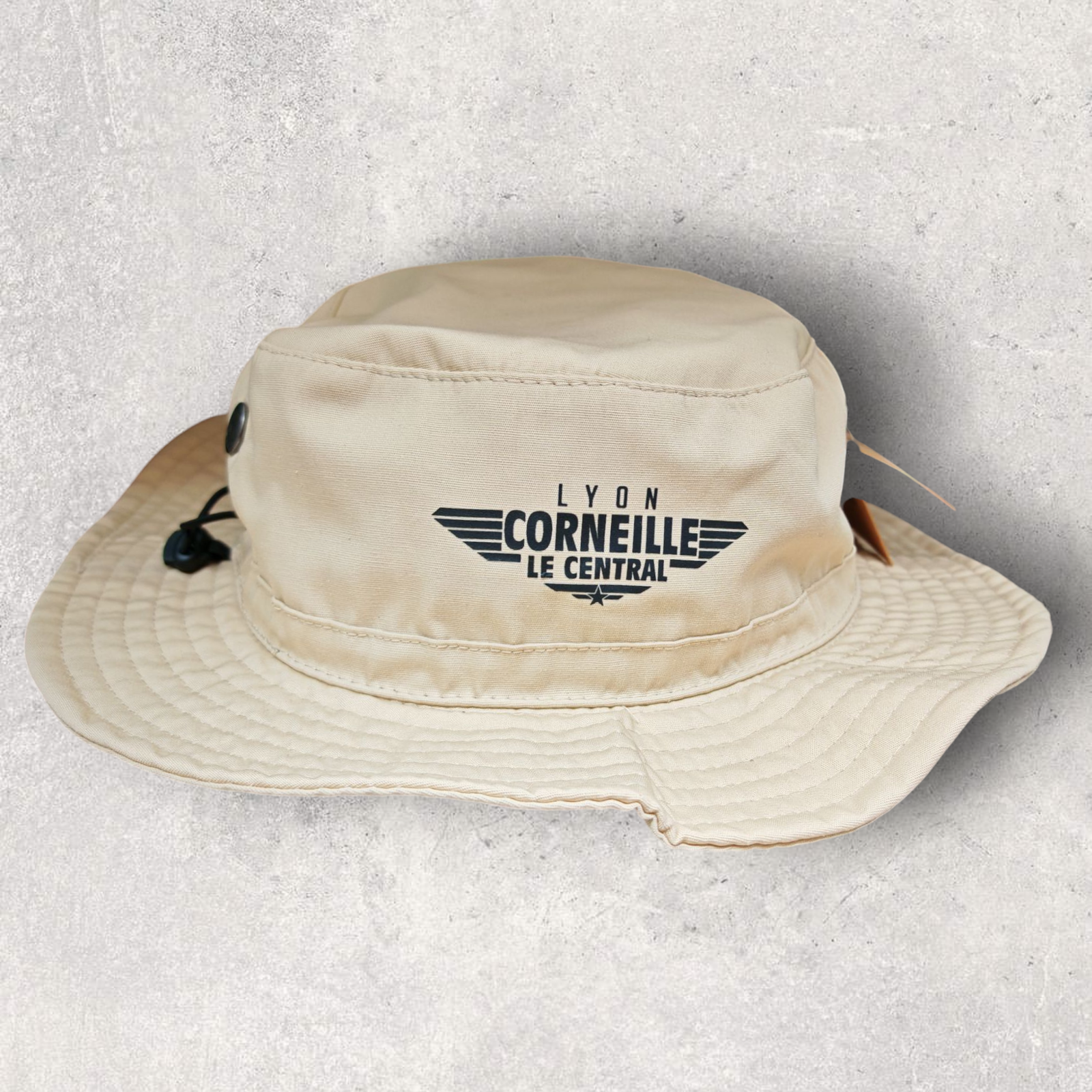 Bob en tissu beige, avec sangle de serrage latérale